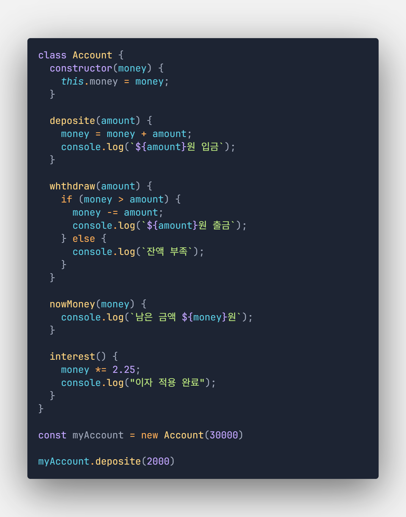 위 예시의 객체지향 문법에서 class안에 있는 money를 직접적으로 변경할 수 없습니다.